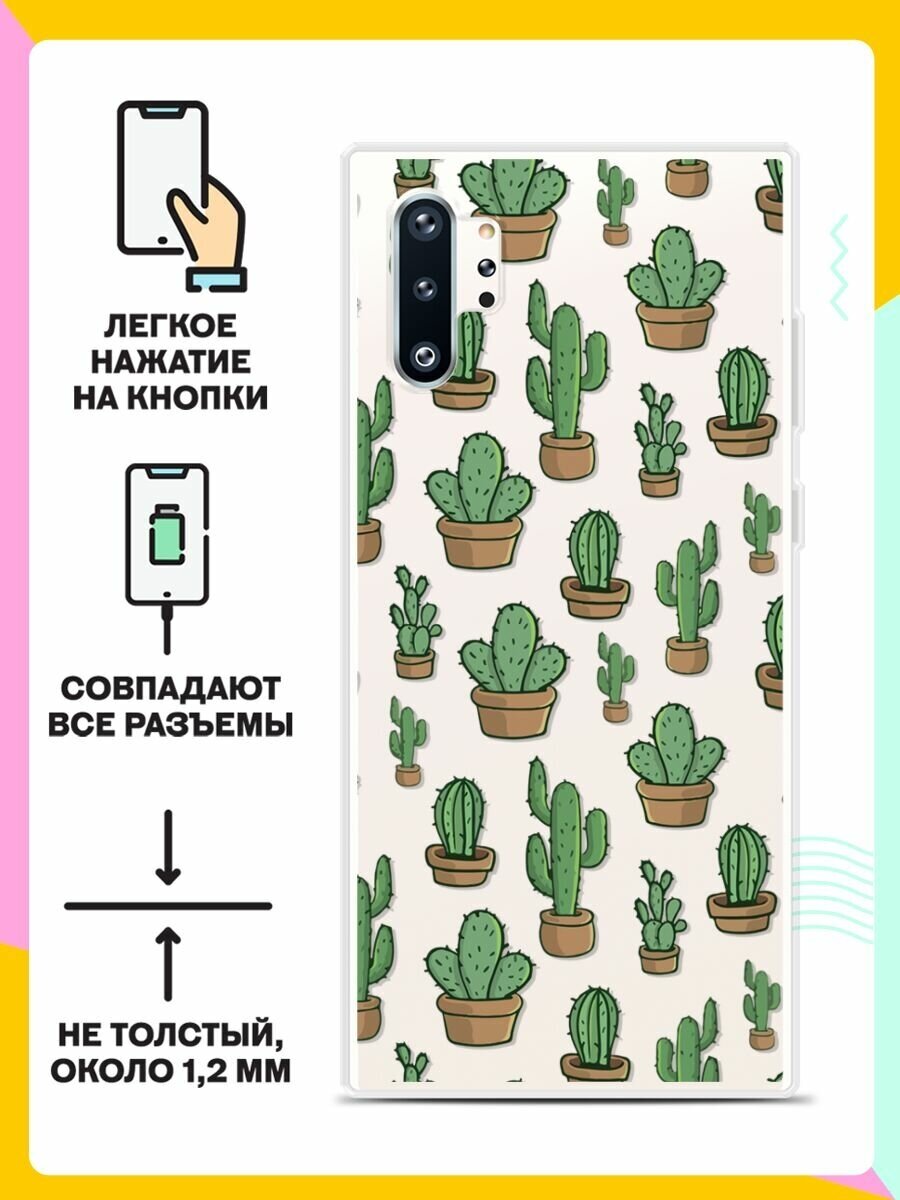 Силиконовый чехол на Samsung Galaxy Note 10+ Кактусы / для Самсунг Галакси Ноут 10 Плюс информация: