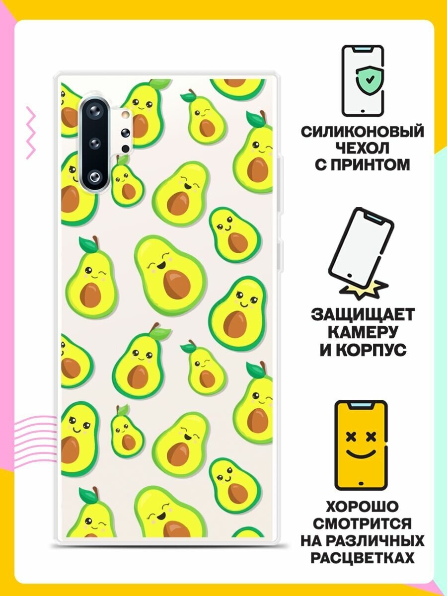 Силиконовый чехол на Samsung Galaxy Note 10+ Узор из авокадо / для Самсунг Галакси Ноут 10 Плюс информация: