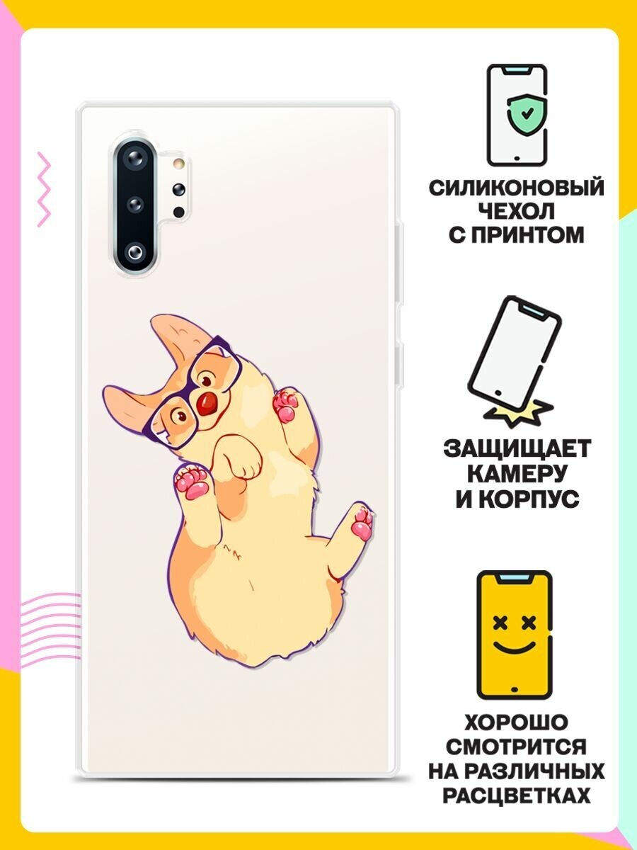 Отзывы на Силиконовый чехол на Samsung Galaxy Note 10+ Корги в очках / для Самсунг Галакси Ноут 10 Плюс