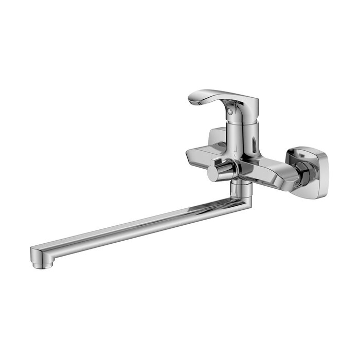 Смеситель на раковину настенный Эверест B46-350 с круглым поворотным изливом, кран-буксы 1/2", хром