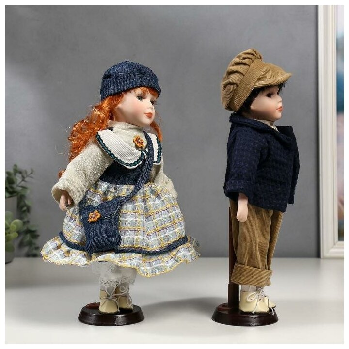 10 цен на Кукла коллекционная КНР Парочка, 2 шт, "Злата и Сева в синих нарядах в полосочку" 30 см (4822743)