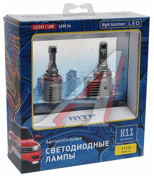 Светодиодные автолампы MTF Light, серия Night Assistant, 4500K, H11/H8/H9/H16, 2шт. ком-кт.