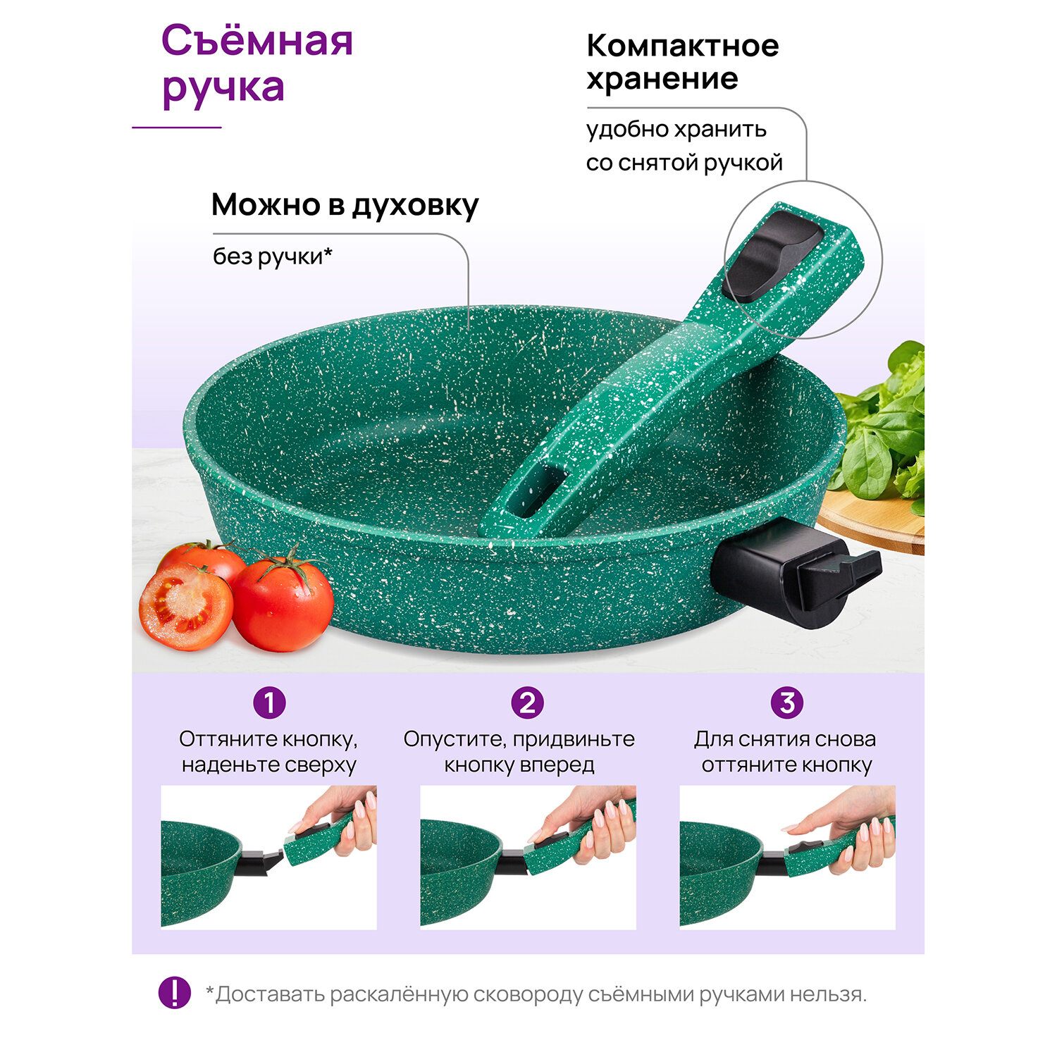 Отзывы на Сковорода глубокая 22 см Elan Gallery гармония вкуса Изумруд с крышкой D22, со съёмной ручкой