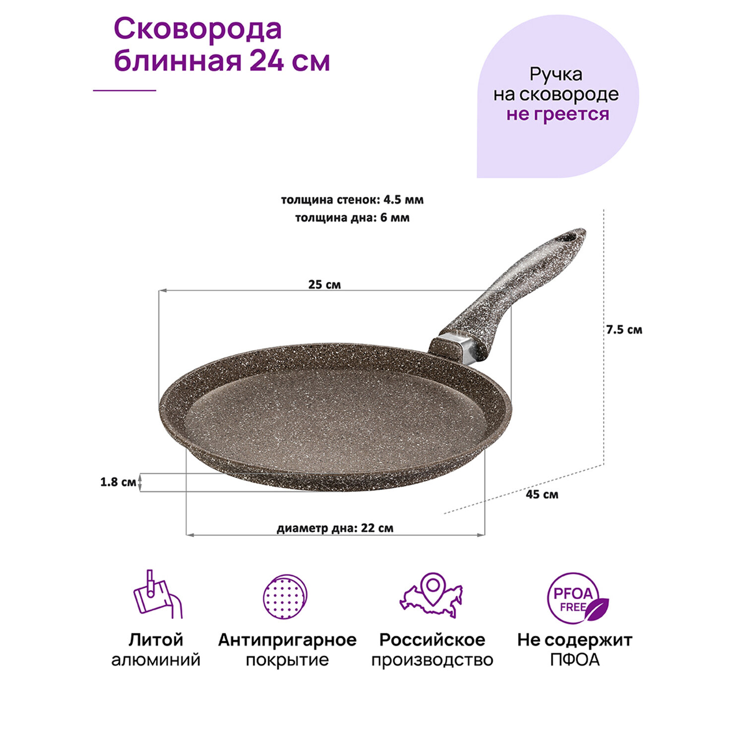 Отзывы на Сковорода блинная 24 см Elan Gallery гармония вкуса Коричневый опал, несъёмная ручка