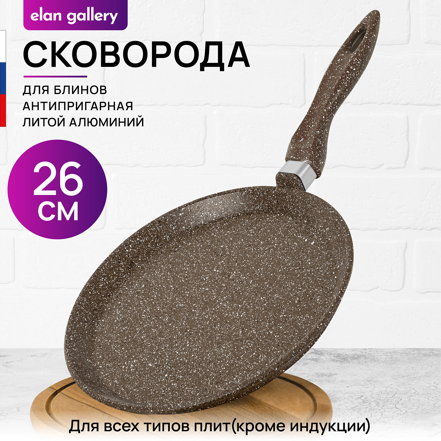 Отзывы на Сковорода блинная 26 см Elan Gallery гармония вкуса Коричневый опал, с несъёмной ручкой