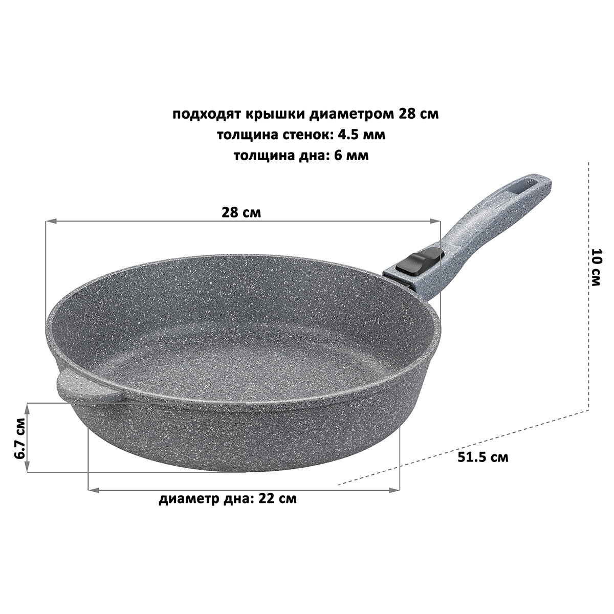 Сковорода глубокая 28 см Elan Gallery гармония вкуса Серый мрамор без крышки, съёмная ручка информация: