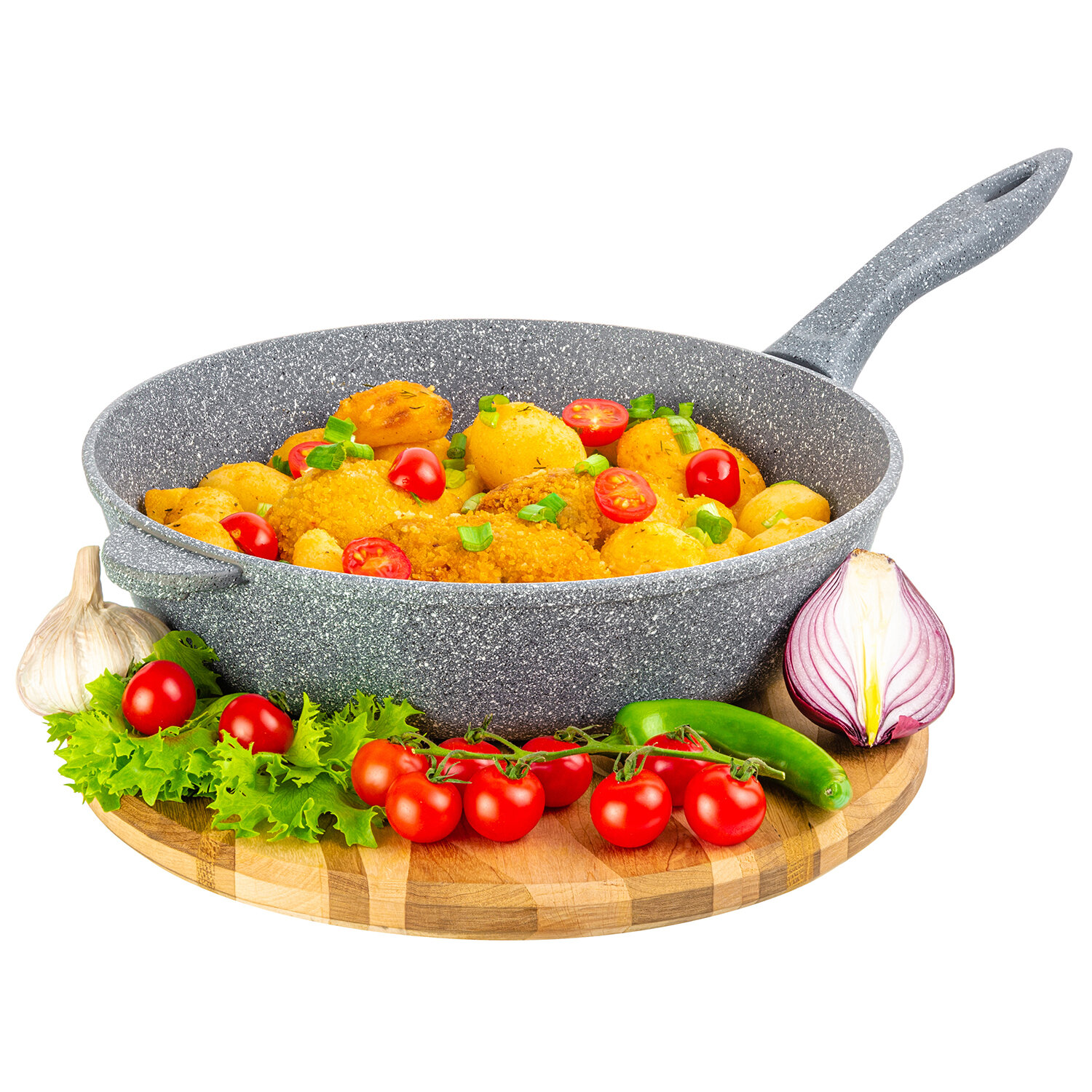 Отзывы на Сковорода глубокая 28 см Elan Gallery гармония вкуса Серый мрамор без крышки, несъёмная ручка