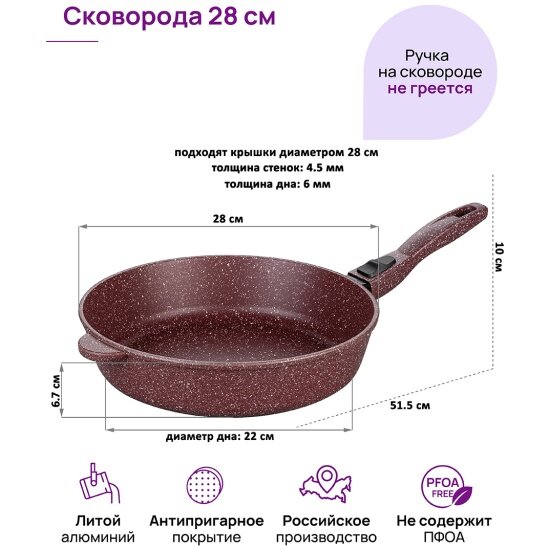 Сковорода глубокая Elan Gallery гармония вкуса Рубин, со съёмной ручкой, 28 см информация: