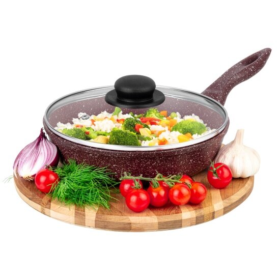 10 цен на Сковорода глубокая Elan Gallery гармония вкуса Рубин, с крышкой, с несъёмной ручкой, 22 см