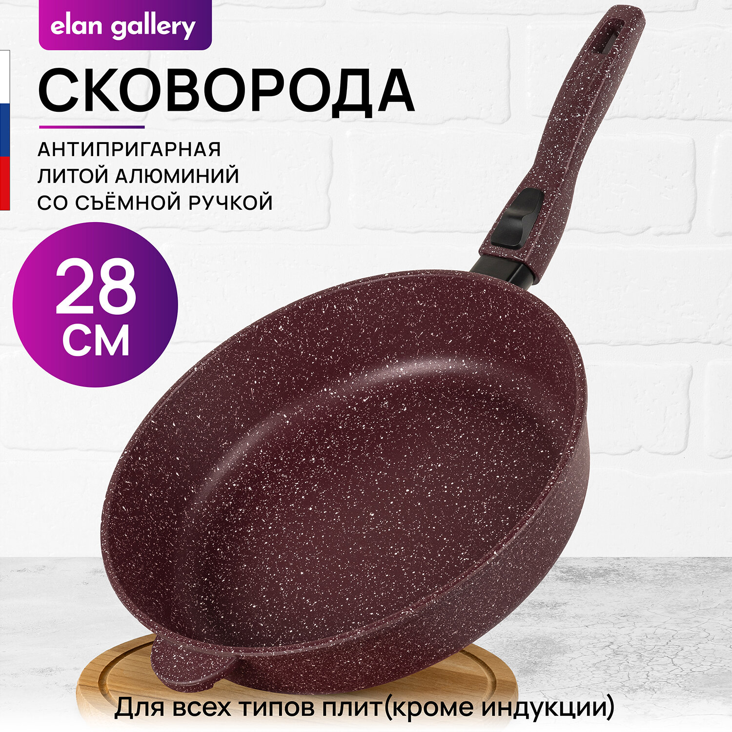 Сковорода глубокая 28 см Elan Gallery гармония вкуса Рубин, со съёмной ручкой информация:
