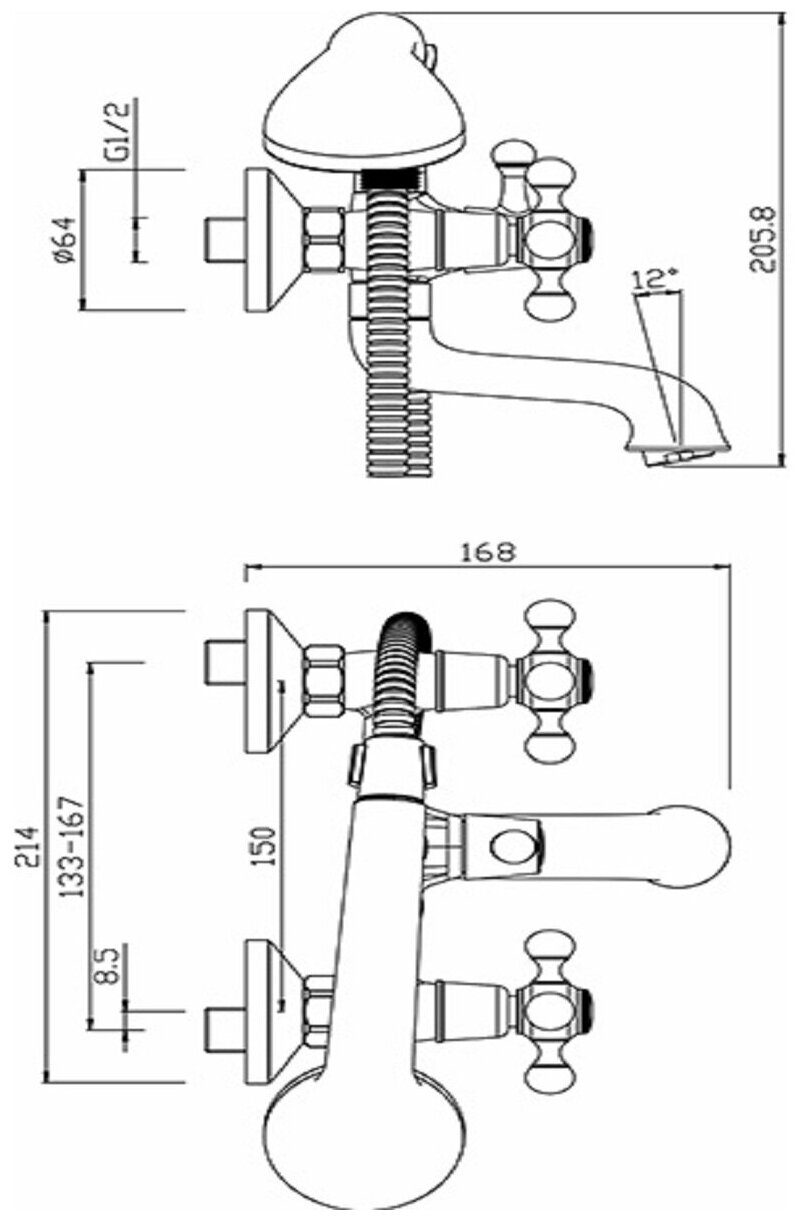 Смеситель на раковину настенный Эверест B46-350 с круглым поворотным изливом, кран-буксы 1/2", хром