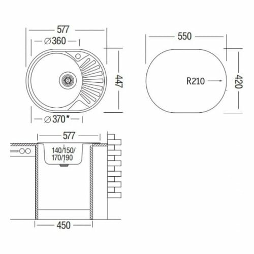 Мойка Melana 5745 U 0,6/160 врезная овальная с сифоном (120 ta *15)