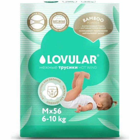 Подгузники-трусики Lovular Hot Wind Bamboo Powder M 6-10кг 56шт информация: