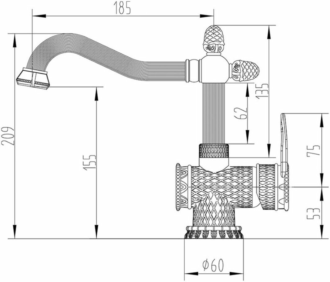 Смеситель Zorg Antic A 424U-BR для раковины, латунь бронзовый, ретро, с орнаментом, одноручковый, поворотный 10 950 ₽
