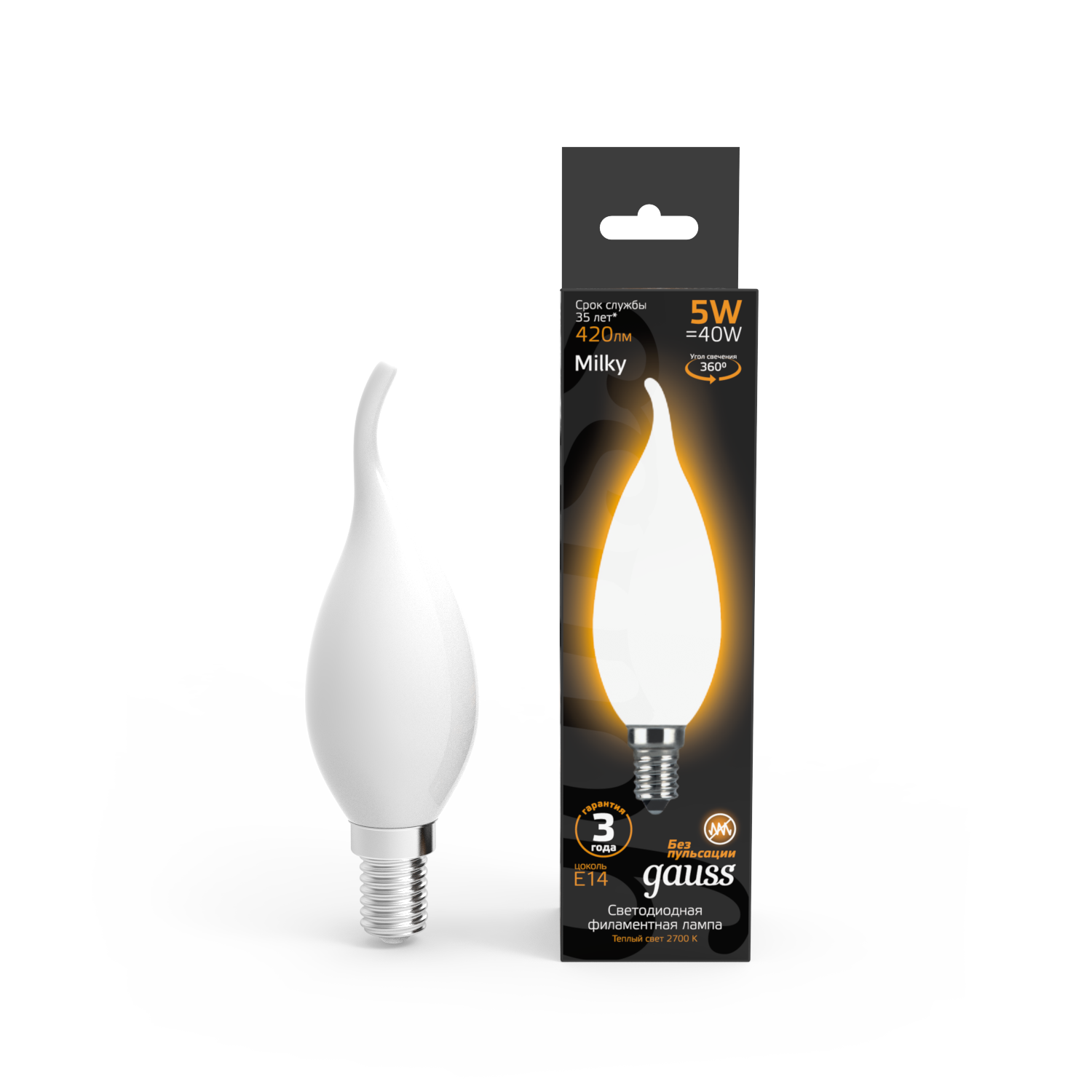 Светодиодная лампа Gauss LED Filament Candle Tailed OPAL E14 5W 2700К (упаковка 10 шт) информация: