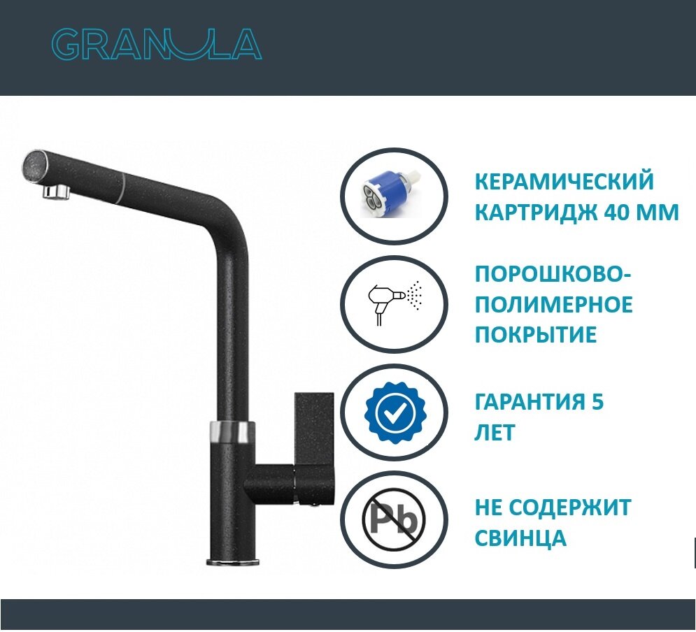 Смеситель Granula GR-2502 черный для кухни информация: