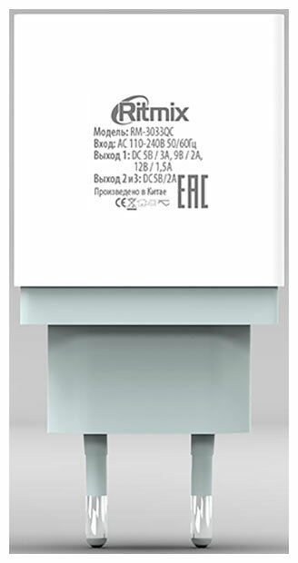 Сетевое зарядное устройство стандарта QC Ritmix RM-3033QC белый информация: