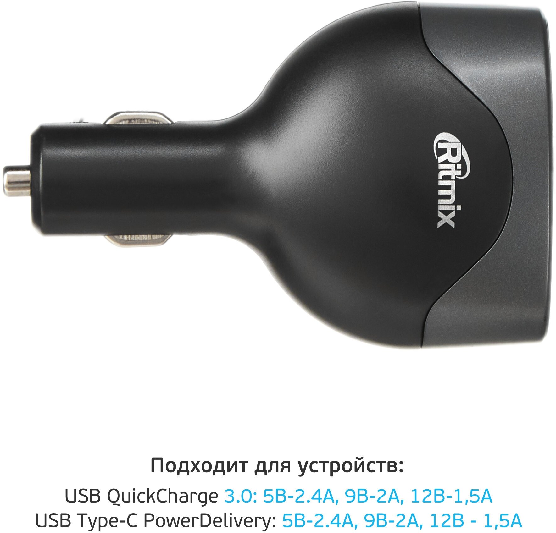 Автомобильное зарядное устройство RITMIX RM-12XQPD 80000163 информация: