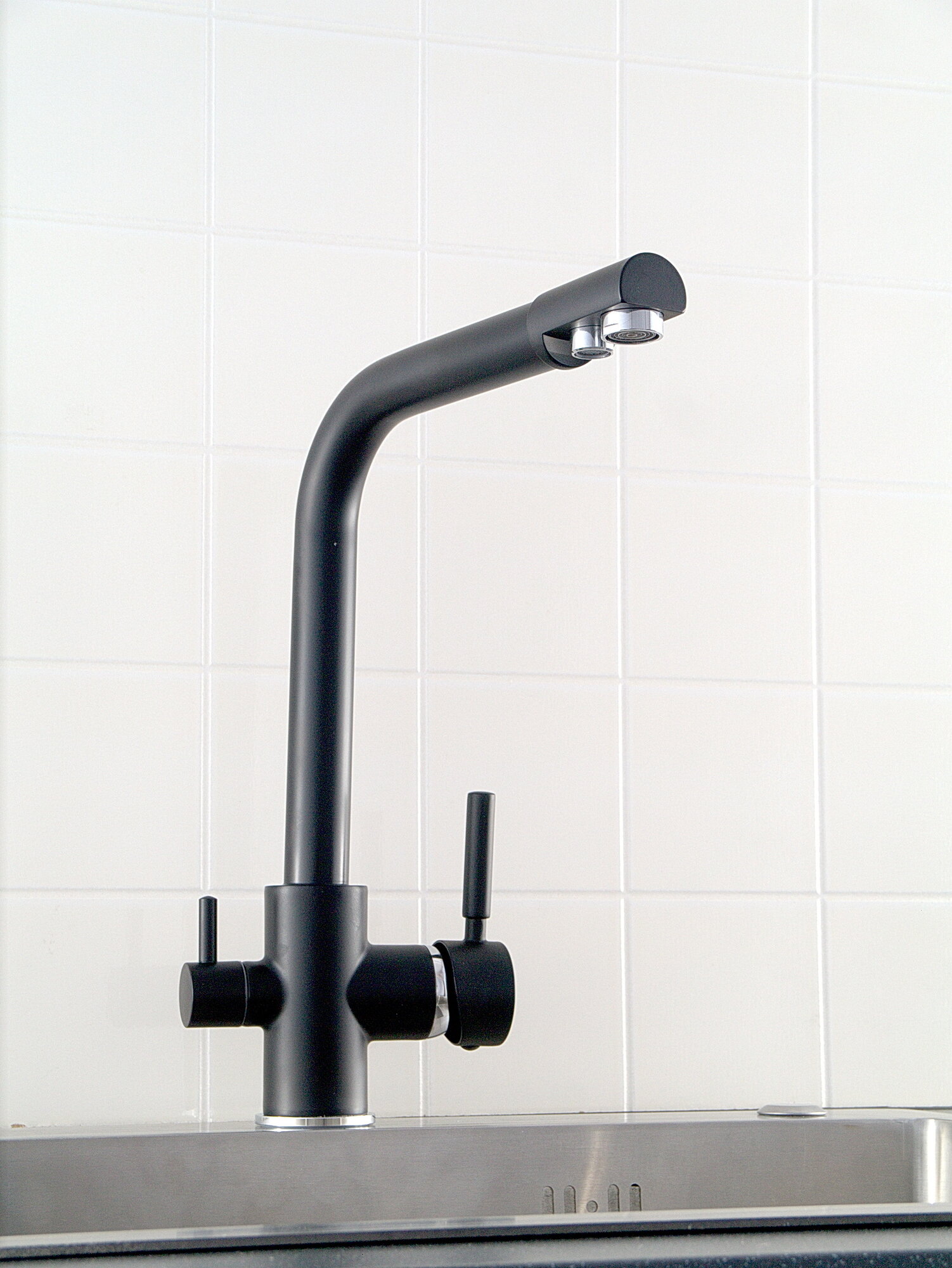 Смеситель на кухню Potato P4498-6 с краном для фильтрованной воды, картридж 35 мм, чёрный, крепление гайка информация: