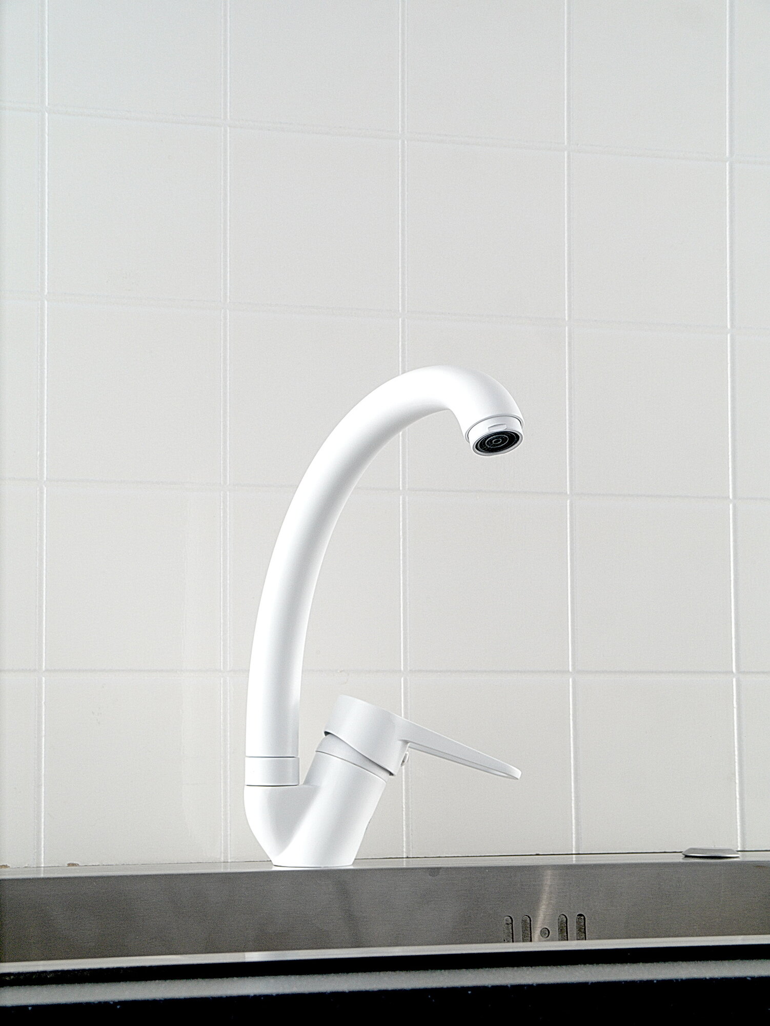 10 цен на Смеситель на кухню Potato P59270-7 с высоким изливом, картридж 35 мм, белый, крепление гайка