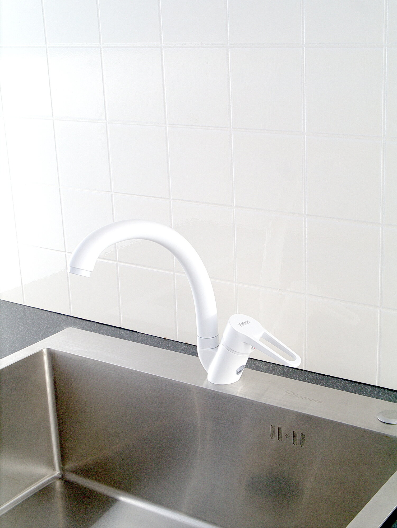 Смеситель на кухню Potato P59270-7 с высоким изливом, картридж 35 мм, белый, крепление гайка информация: