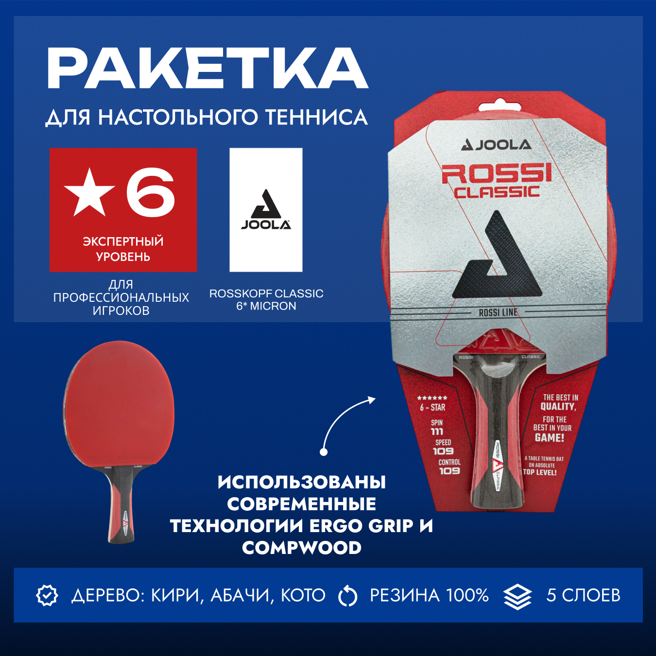Ракетка для настольного тенниса Joola Rosskopf Classic 6* Micron информация: