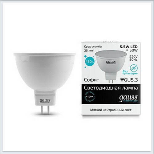 Отзывы на Gauss Лампа светодиодная MR16 GU5.3 3.5W 4100K Gauss Elementary 13524