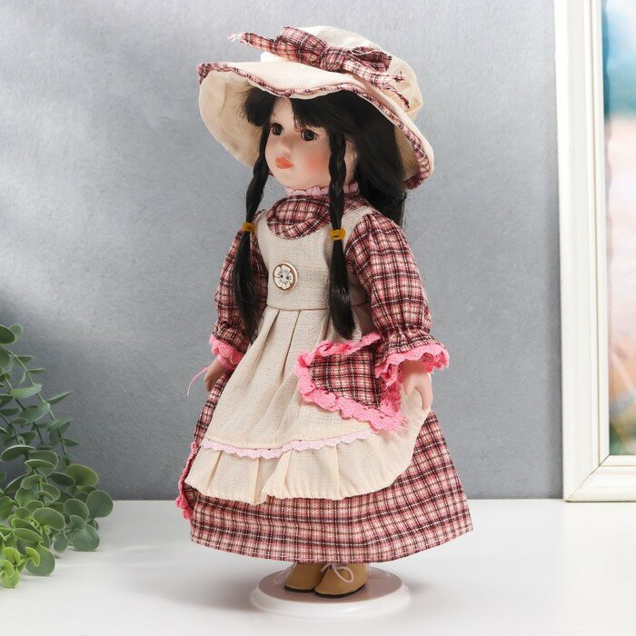 10 цен на Кукла коллекционная керамика "Олеся в платье и шляпке в клетку" 30 см 7559280
