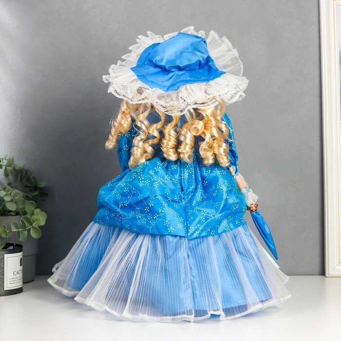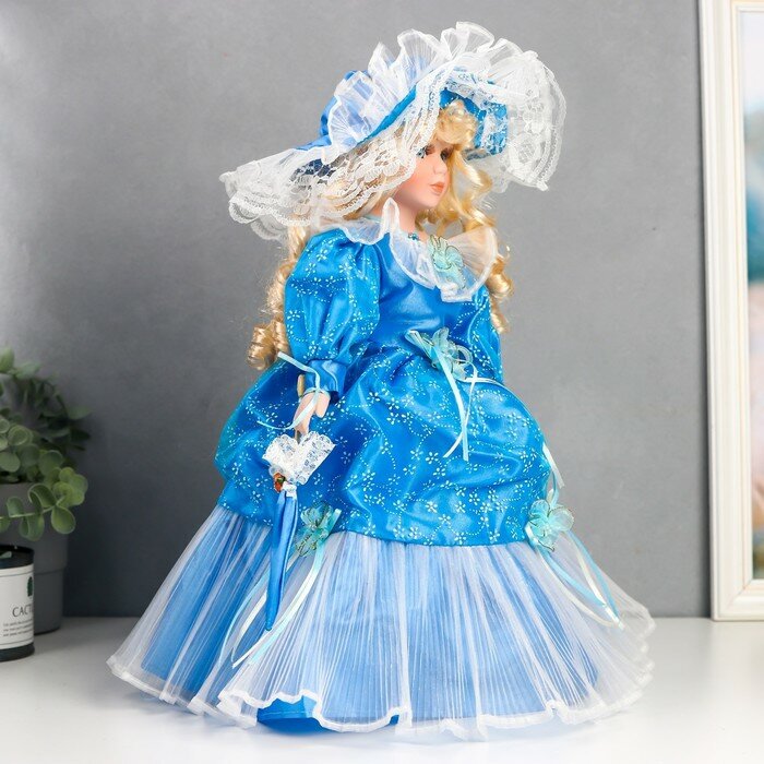 10 цен на Gianni Rodari Кукла коллекционная керамика "Леди Олеся в голубом платье с цветами" 40 см