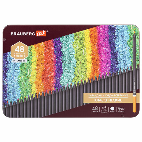 10 цен на Карандаши цветные художественные BRAUBERG ART PREMIERE, комплект 2 шт., набор 48 цветов, 4 мм, металл кейс, 181694