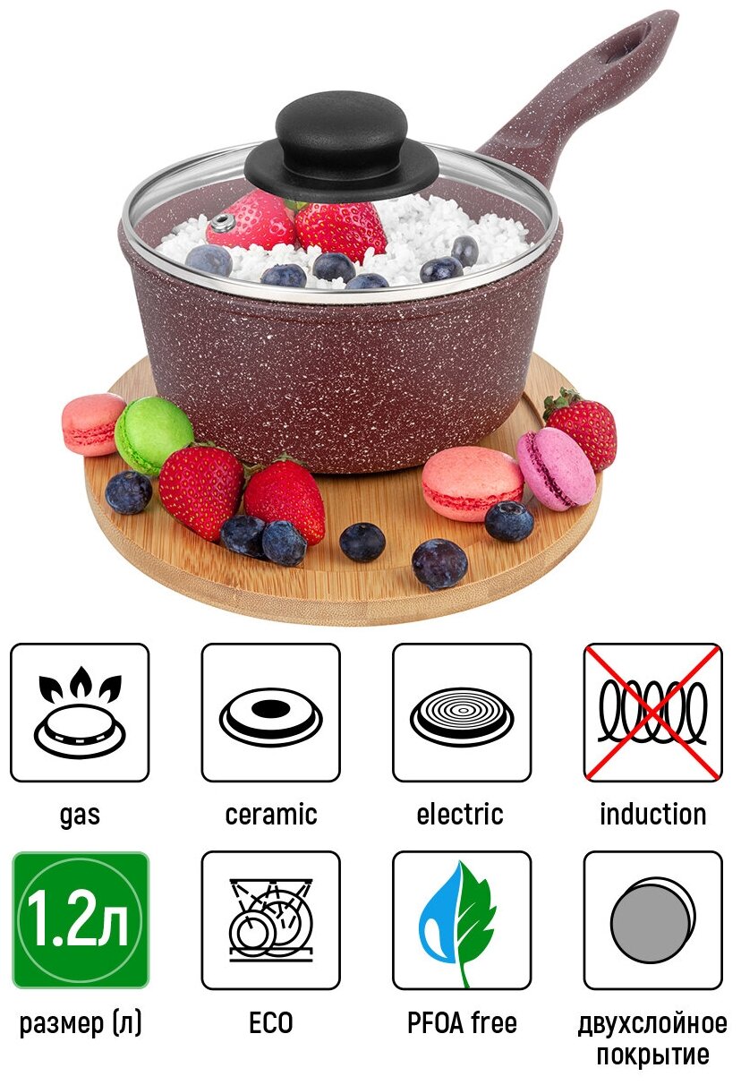 Ковш 1,2 л Elan Gallery гармония вкуса Рубин с крышкой D16, толстостенный из литого алюминия с двухслойным антипригарным покрытием с несъемной ручкой Идеальный подарок на Новый год Рождество День Рождения и 8 марта информация: