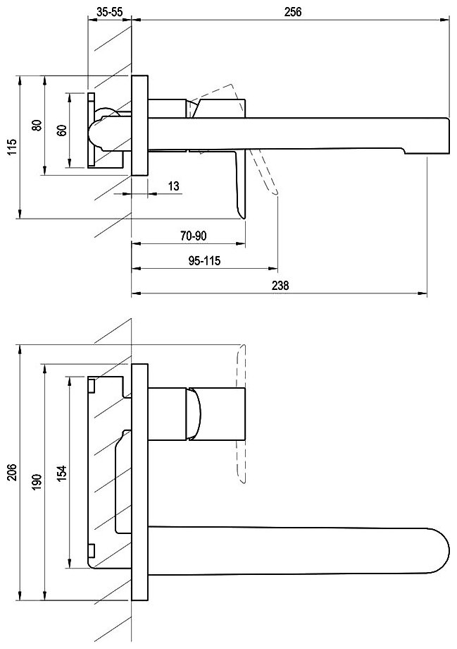 Puri, встраиваемый в стену смеситель для раковины, длина излива 23,8см, неповоротный излив, арт. X070146, Ravak