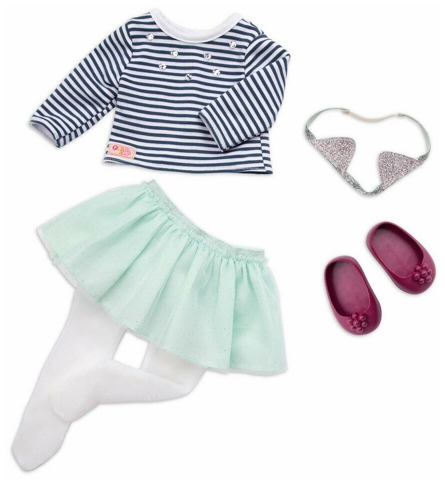 | Комплектация | кукла, полосатая рубашка, юбка-пачка, колготки, пара туфель, повязка на голову с блестящими кошачьими ушами |