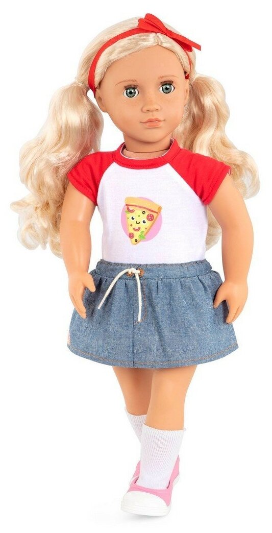 | Комплектация | кукла, топ с принтом пиццы, юбка, пара носков, повязка на голову, пара обуви |