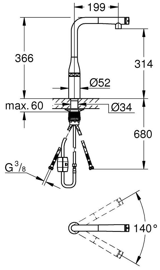 Смеситель для мойки с управлением SmartControl, GROHE Essence SmartControl, хром, (31615000) информация: