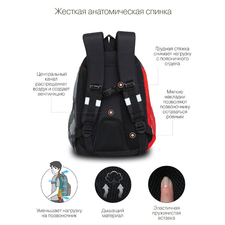 Рюкзак школьный подростковый Grizzly RB-259-1 Черный - красный - серый информация: