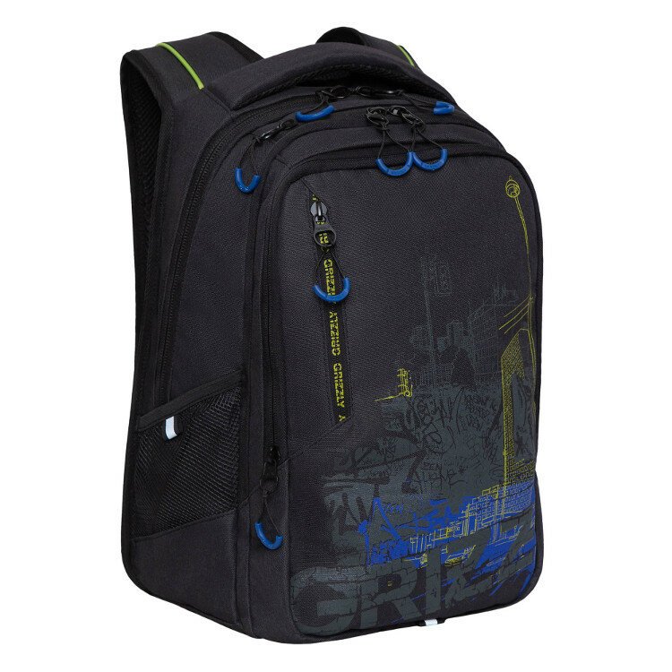 Рюкзак школьный Grizzly RU-338-1 Черный - салатовый информация: