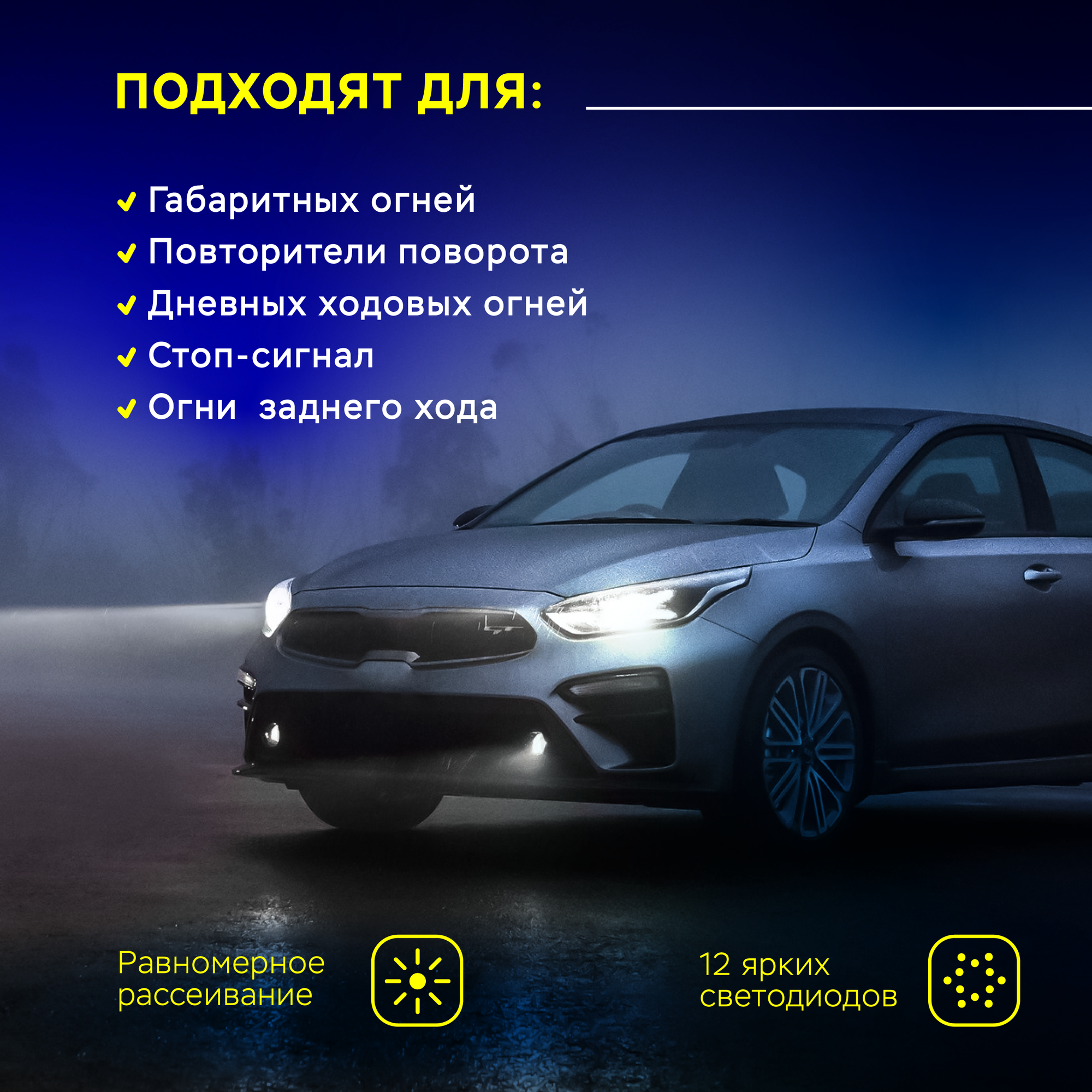 Отзывы на Лампы светодиодные автомобильные P21W AVS LED белый 12В Для габаритных огней и стоп-сигнала. Комплект - 2 шт.