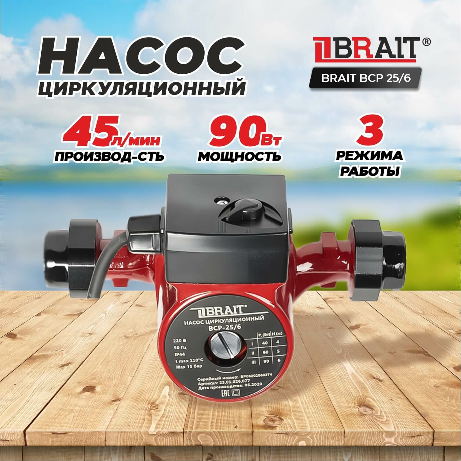 Насос циркуляционный BRAIT BCP 25/6 информация: