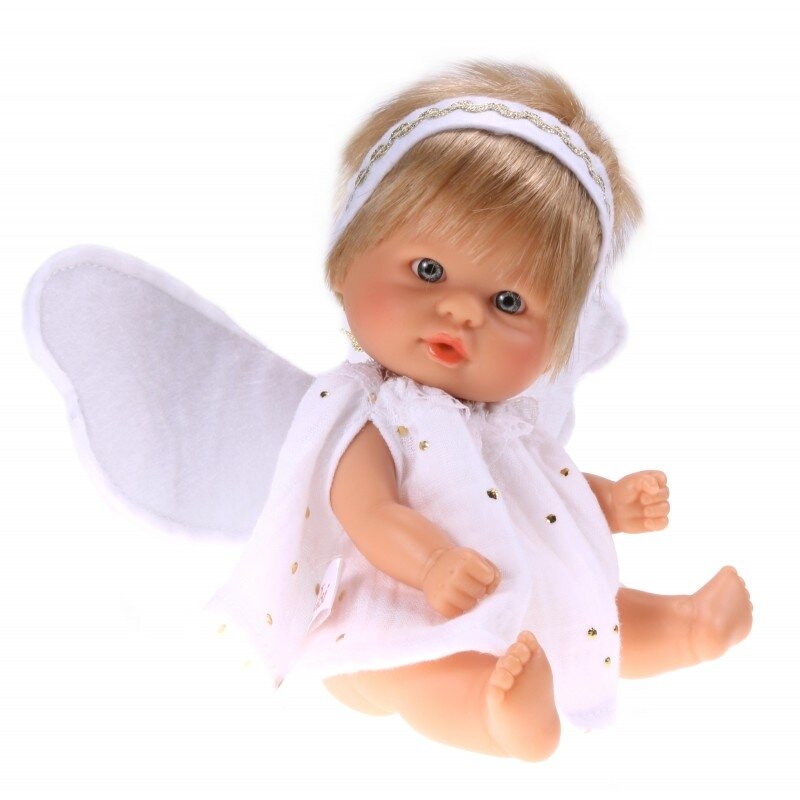 10 цен на ASI кукла-пупс - 20 см (в белом платье с золотыми каплями и крылышками)