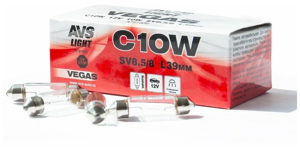 Лампа подсветки c10w 12v 10w avs vegas (пальчиковая 39 мм Avs A78190S информация: