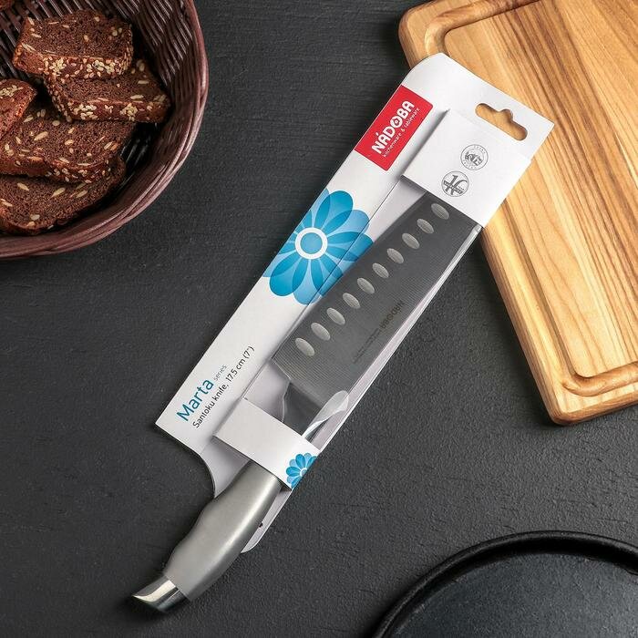 Отзывы на Нож кухонный NADOBA MARTA Сантоку, лезвие 17,5 см, ручка из стали. В наборе 1шт.