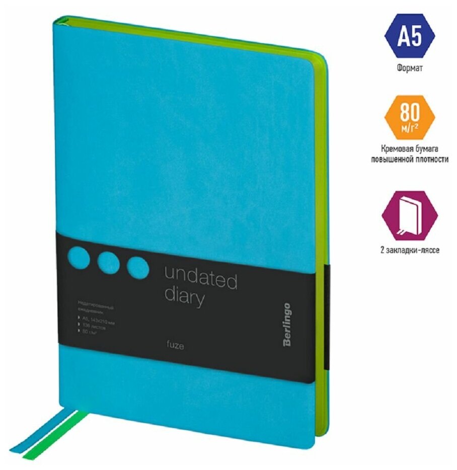 Ежедневник Berlingo Fuze недатированный на 2022-2023 год, А5, 136 листов, бирюзовый, цвет бумаги тонированный
