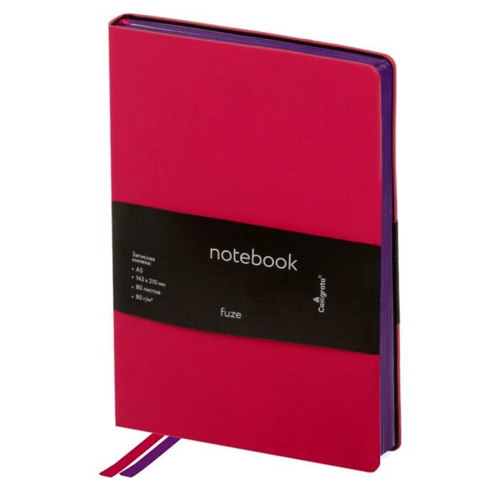 Колледж-тетрадь Fuze А5, 80 листов в клетку, кожзам, фиолетовый срез, фуксия информация: