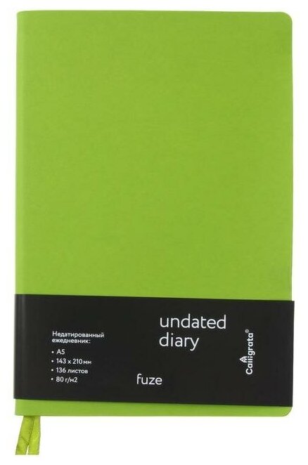 Ежедневник недатированный формат A5, 136 листов в клетку, кожзам салатовый "Fuze", фуксия срез, 2 ляссе, перфорированные уголки информация: