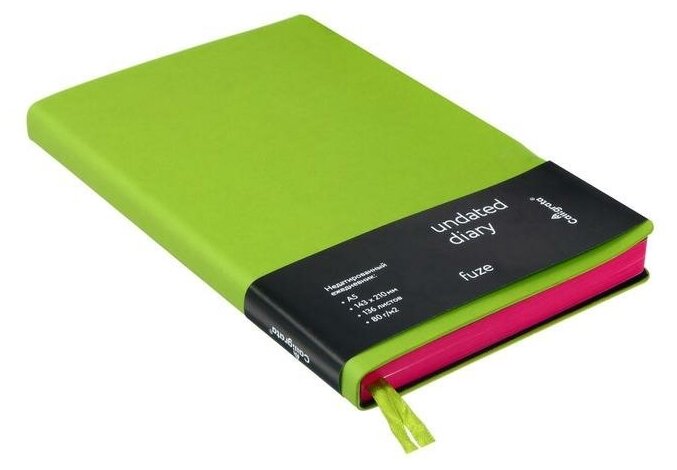 Отзывы на Ежедневник недатированный формат A5, 136 листов в клетку, кожзам салатовый "Fuze", фуксия срез, 2 ляссе, перфорированные уголки