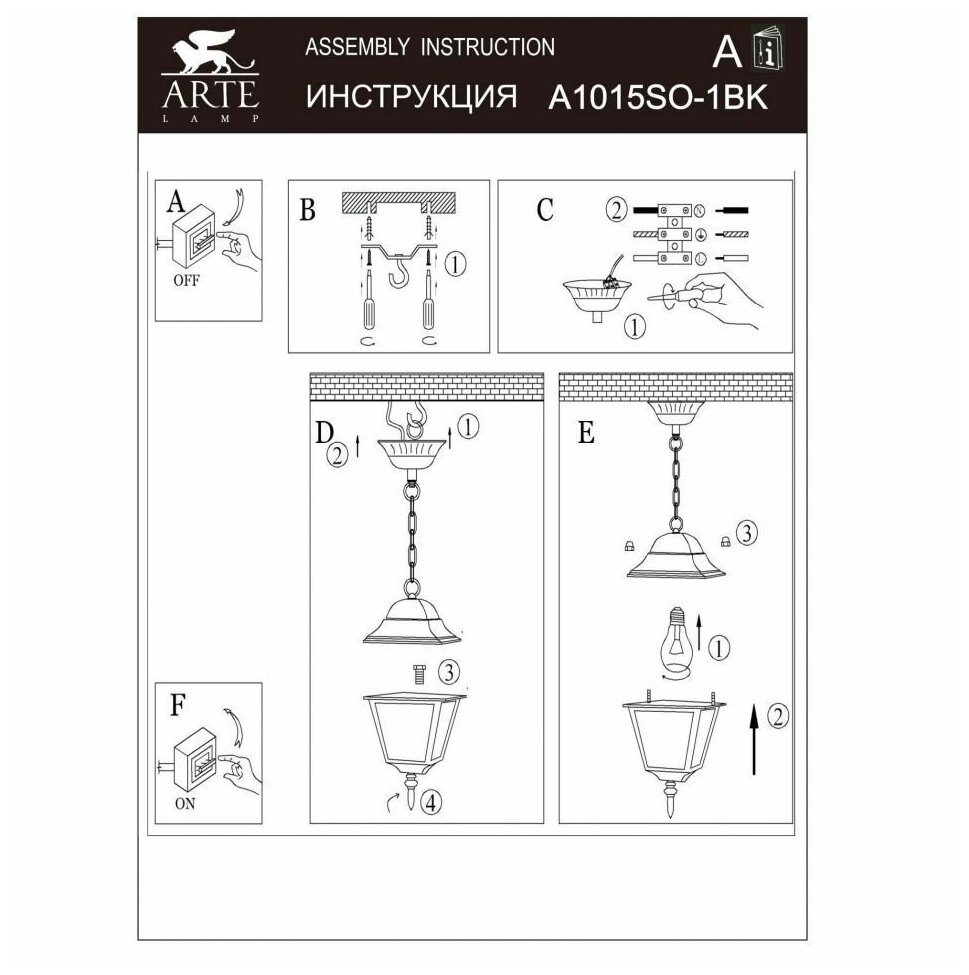 | Подробная комплектация | Уличное освещение Arte Lamp A1015SO-1BK |