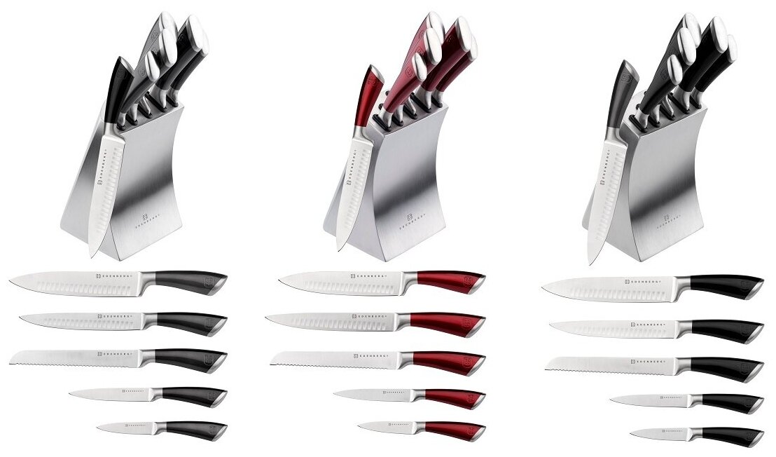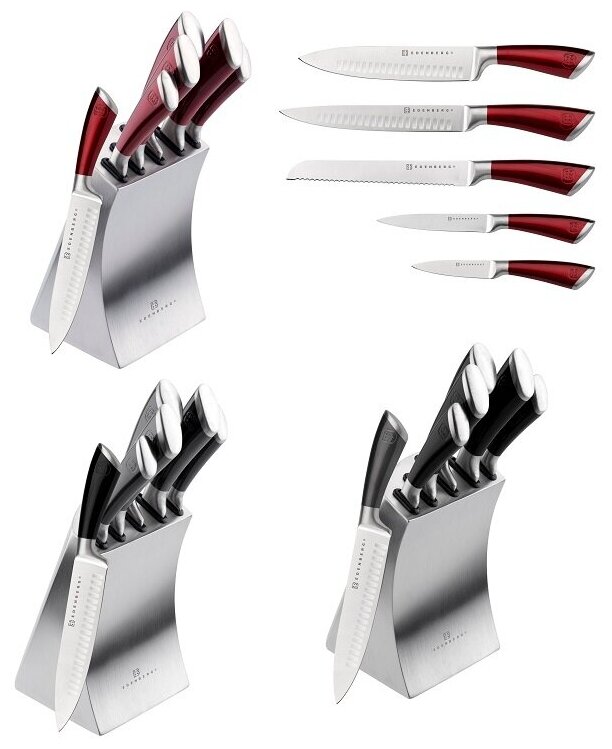| Типы ножей в наборе | нож для овощей, нож для хлеба, универсальный нож, филейный нож, шеф-нож |