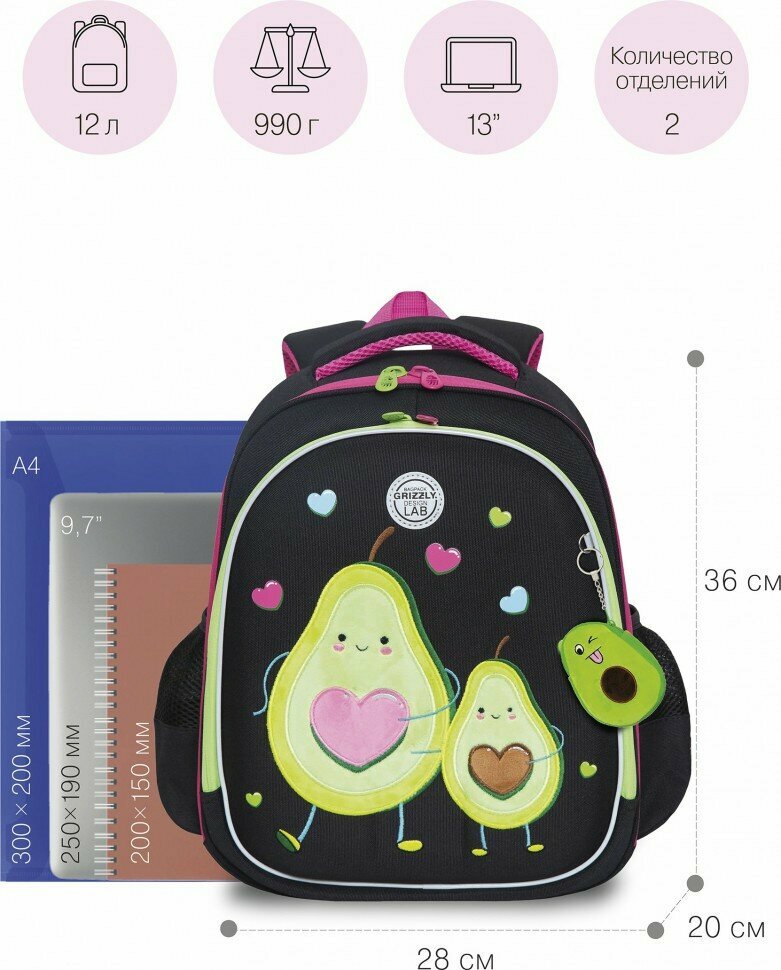 Ранец GRIZZLY анатомическая спинка, c брелоком, для девочек, "AVOCADO LOVE", 36х28х20 см, RAz-286-11/1 Комплект - 1 шт .