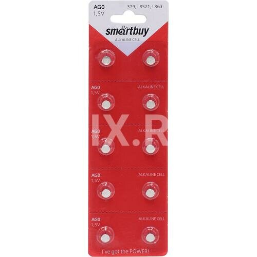 Элемент питания Smartbuy Alkaline Cell AG0 (LR50/ LR521/ G0/ V379/ SR521W) бл 10